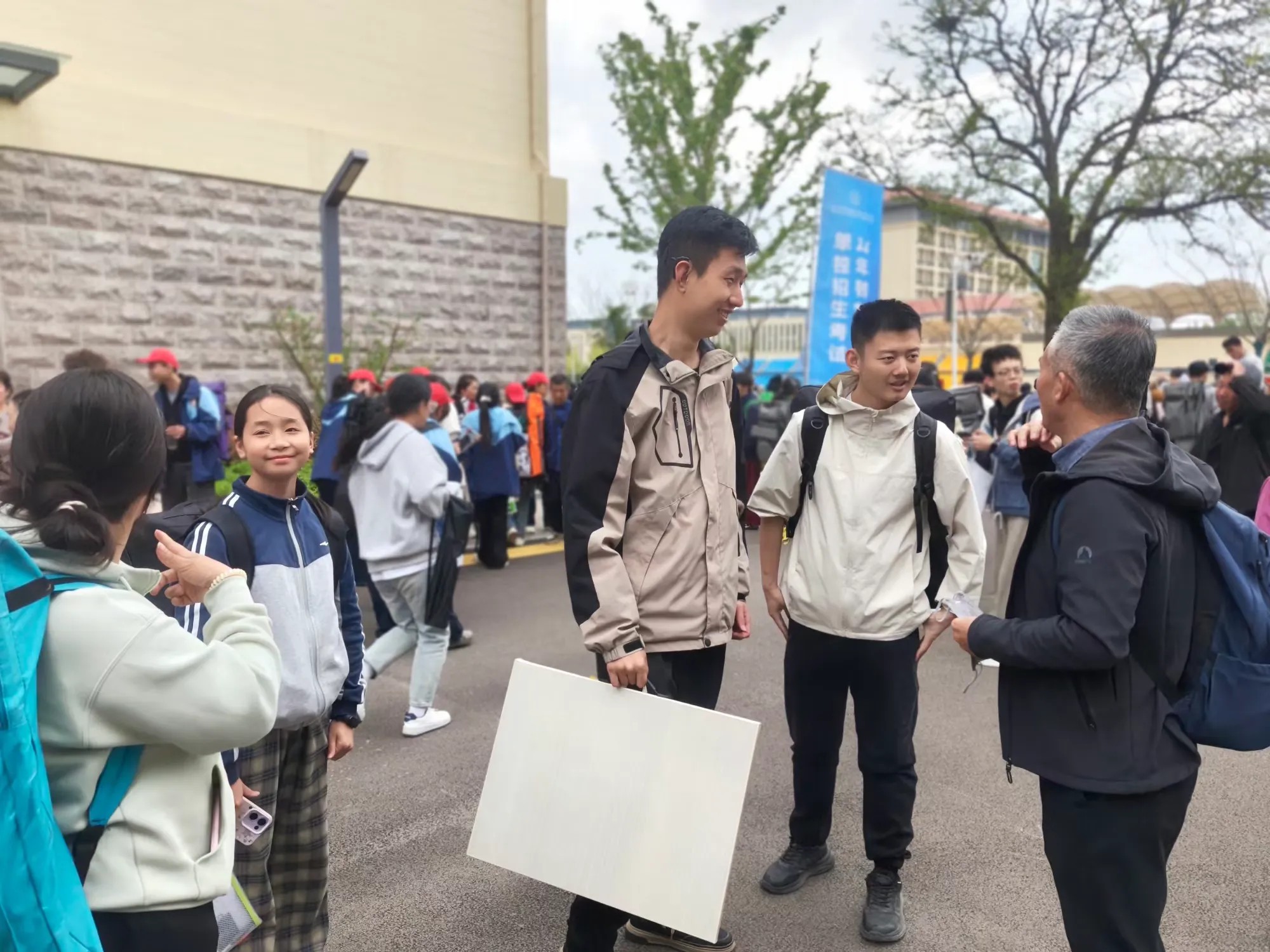 4月8日上午8点30分,两位带队老师准时将学生们送入考场,叮嘱学生沉着应考、发挥实力。